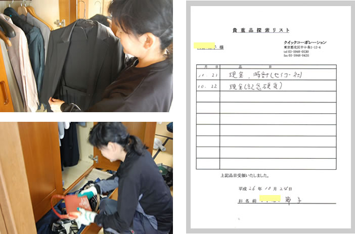 貴重品や権利関係の書類などもお探しさせていただきます。